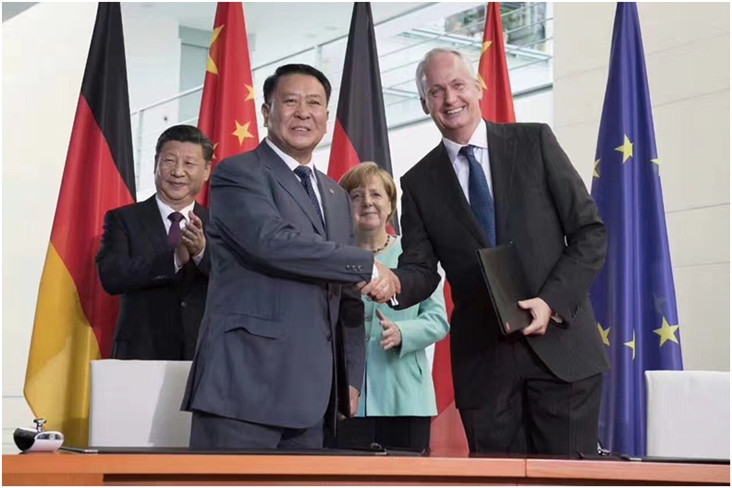 7月5日,在中國(guó)國(guó)家主席習(xí)近平與德國(guó)總理默克爾的共同見證下,北汽集團(tuán)與戴姆勒簽署了新的框架協(xié)議。北汽集團(tuán)董事長(zhǎng)徐和誼和戴姆勒股份公司董事會(huì)成員、負(fù)責(zé)中國(guó)業(yè)務(wù)的唐仕凱(Hubertus Troska)出席了在德國(guó)柏林舉行的簽約儀式。雙方表示,將共同投資50億元人民幣,引入梅賽德斯-奔馳品牌的純電動(dòng)汽車產(chǎn)品,在北京奔馳建立純電動(dòng)汽車生產(chǎn)基地及動(dòng)力電池工廠。