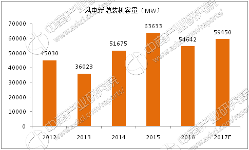 2012-2017年全球風(fēng)電新增裝機(jī)容量
