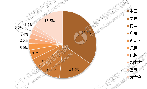 全球排名前十的風(fēng)電累計(jì)裝機(jī)容量的國(guó)家依次為中國(guó)、美國(guó)、德國(guó)、印度、西班牙、英國(guó)、法國(guó)、加拿大、巴西、意大利,累計(jì)裝機(jī)容量分別為168732MW、82184MW、50018MW、28700MW、23074MW、14543MW、12066MW、11900MW、10740MW、9257MW,分別占全球風(fēng)電累計(jì)裝機(jī)容量的34.7%、16.9%、10.3%、5.9%、4.7%、3.0%、2.5%、2.4%、2.2%和1.9%。