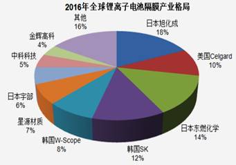 全球范圍內(nèi)的鋰離子電池隔膜的市場需求量呈逐年遞增的趨勢,隔膜出貨量從2009年的2.4億平米增至2014年的11.85億平米。日本旭化成、日本東燃化學(xué)以及美國Celgard(Celgard于2015年2月被濕法技術(shù)代表公司旭化成收購,干法生產(chǎn)線停產(chǎn)并新建立濕法生產(chǎn)線)是隔膜三巨頭,占據(jù)的全球市場份額曾高達(dá)77%。但隨著韓國和中國企業(yè)的崛起,三巨頭的份額在快速下滑,2014年占比56%左右。