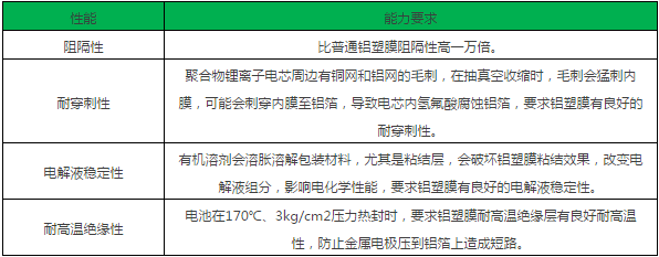 作為軟包電池的核心材料,鋁塑膜的生產(chǎn)技術(shù)難度遠(yuǎn)高于隔膜、正極、負(fù)極、電解液,是鋰電池行業(yè)內(nèi)三大高技術(shù)之一。從產(chǎn)品性能上看,我國鋁塑膜產(chǎn)品與國外產(chǎn)品存在較大差距,主要表現(xiàn)在:鋁箔表面處理工藝落后、污染大;鋁箔的水處理會(huì)產(chǎn)生“氫脆”,導(dǎo)致鋁塑膜耐拆度差;鋁箔表面挺度不夠,良品率差;聚丙烯與高導(dǎo)熱的鋁箔表面復(fù)合時(shí)易卷曲,產(chǎn)生層狀結(jié)晶;國內(nèi)膠粘劑配方工藝較差,易出現(xiàn)分層剝離問題。