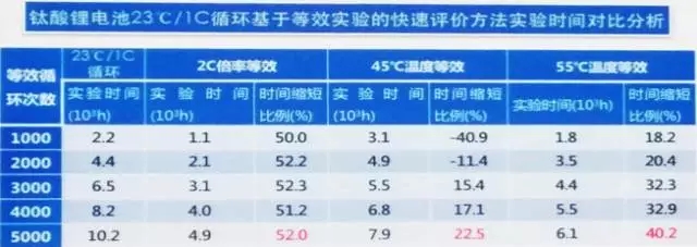 圖中可以看出,鈦酸鋰的循環(huán)次數(shù)和容量保持率是大大好于磷酸鐵鋰電池。據(jù)我們的測試經(jīng)驗(yàn)來看,循環(huán)次數(shù)七八千次以前,國內(nèi)的電池和國際上的電池區(qū)別不大,七八千次以后,國產(chǎn)電池的一致性上有差異。這些問題促使我們需要改進(jìn)評(píng)測技術(shù)。