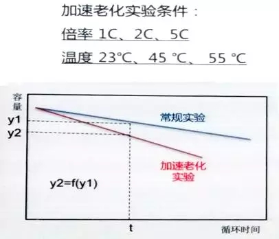 在實(shí)驗(yàn)中,通過對(duì)電池在常規(guī)實(shí)驗(yàn)和加速老化實(shí)驗(yàn)條件下的定期表征,找尋不同條件下電池特性一致的等效點(diǎn),建立等效點(diǎn)之間的函數(shù)關(guān)系(y2=f(y1)), 從而以加速實(shí)驗(yàn)條件的數(shù)據(jù)對(duì)常規(guī)1C、23℃實(shí)驗(yàn)條件下的數(shù)據(jù)進(jìn)行預(yù)測和估算。