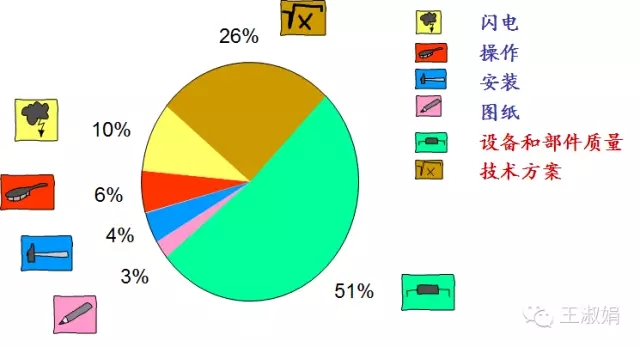 設(shè)備故障和檢修時(shí)造成系統(tǒng)效率低的一個(gè)重要原因。下圖統(tǒng)計(jì)了光伏電站故障原因,其中一半都是來(lái)自于設(shè)備。