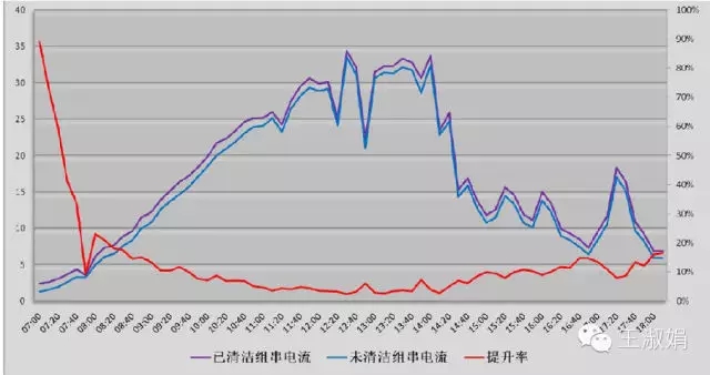 在西北地區(qū),一次沙塵暴可能會(huì)造成發(fā)電量直接降低5%以上;在東部,嚴(yán)重的霧霾天氣時(shí)光伏電站幾乎沒(méi)有出力。下圖是清洗前后光伏電站的出力對(duì)比。