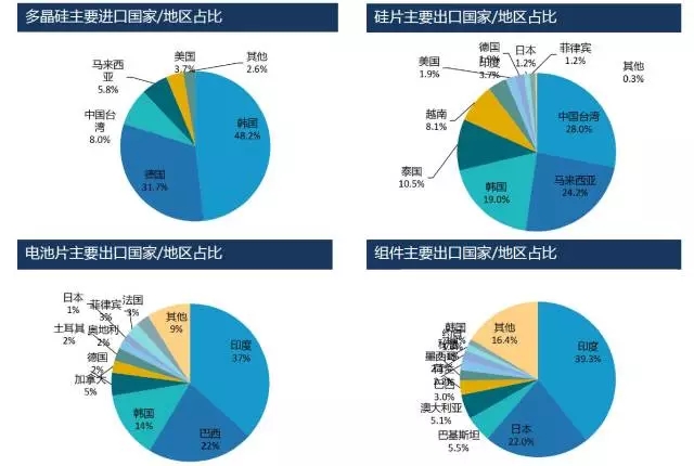 5. 組件出口市場由歐美日成熟市場轉(zhuǎn)向新興市場的趨勢明顯,包括印度、巴西、巴基斯坦、墨西哥等;