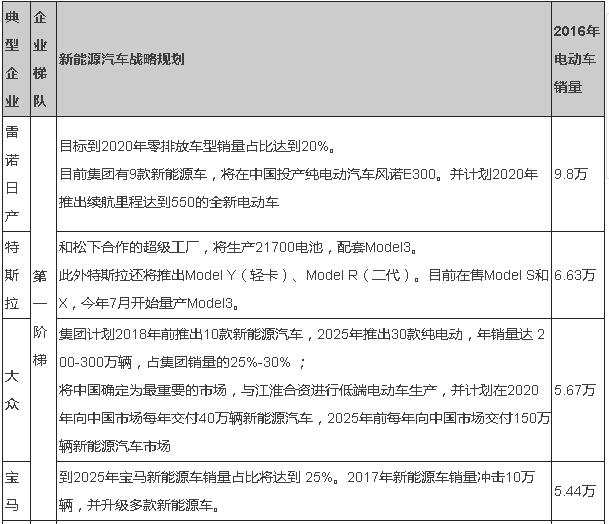 就目前而言,歐洲主要有大眾、寶馬、戴姆勒、PSA等企業(yè)在國(guó)內(nèi)市場(chǎng)表現(xiàn)良好,且越來(lái)越重視發(fā)展新能源汽車。其中大眾車型最多且最重視中國(guó)市場(chǎng),已經(jīng)同江淮合作;戴姆勒兩大品牌發(fā)力,并自建電池組裝廠,已經(jīng)同北汽合作;寶馬車型增速迅猛且后勁足,但是在中國(guó)新能源汽車市場(chǎng)產(chǎn)品單一、銷量不高,為適應(yīng)中國(guó)汽車工業(yè)的發(fā)展以及與奔馳汽車的競(jìng)爭(zhēng),其在中國(guó)尋找新合作伙伴的可能性比較大;而PSA規(guī)模相對(duì)較小,將于2019-2020年推出11款電動(dòng)車,或?qū)⒗^續(xù)與東風(fēng)汽車進(jìn)行合作。