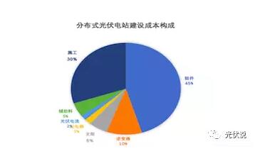 組件占45%,逆變器占10%,支架占6%,配電箱占2%,光伏電流占2%,輔助料占5%,施工占30%。
