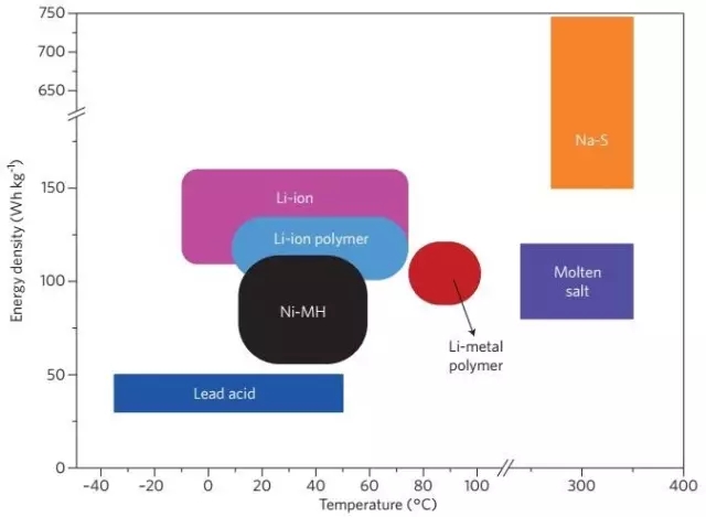 圖1. 典型商業(yè)化鋰電池在不同溫度下的能量密度