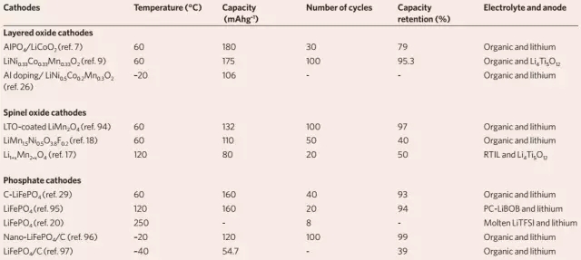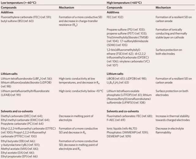 表2. 可在極端溫度條件下工作的電解質(zhì)
