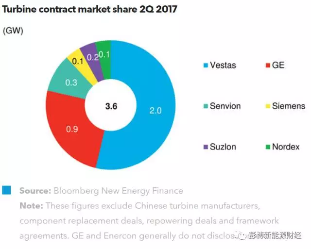 2017年第二季度共簽署總裝機容量達(dá)3.6GW的風(fēng)電合同