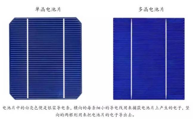 硅片僅僅是基礎,需要經過處理以后才會具有導電、發(fā)電的特性;在制作電池片過程中需要制絨工藝使得表面凹凸不平,從而有利于光子的捕獲;為了獲得最良好的導電性能,電池片往往采用銀漿導電。電池片上的白亮色就是鍍上去的銀漿用于導電。