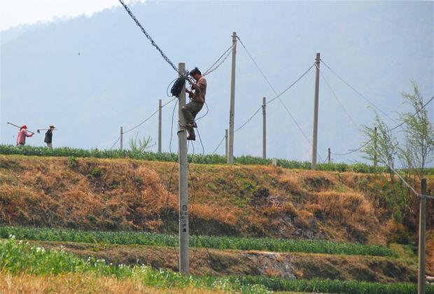 電力工人在云南鄉(xiāng)村作業(yè)。2015年,中國宣布解決了全國最后273萬無電人口的用電問題。圖片來源:Morgann