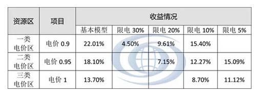 當(dāng)一類、二類資源區(qū)棄光率20%、三類資源區(qū)棄光率5%~10%時(shí),資本金內(nèi)部收益率低于12%;