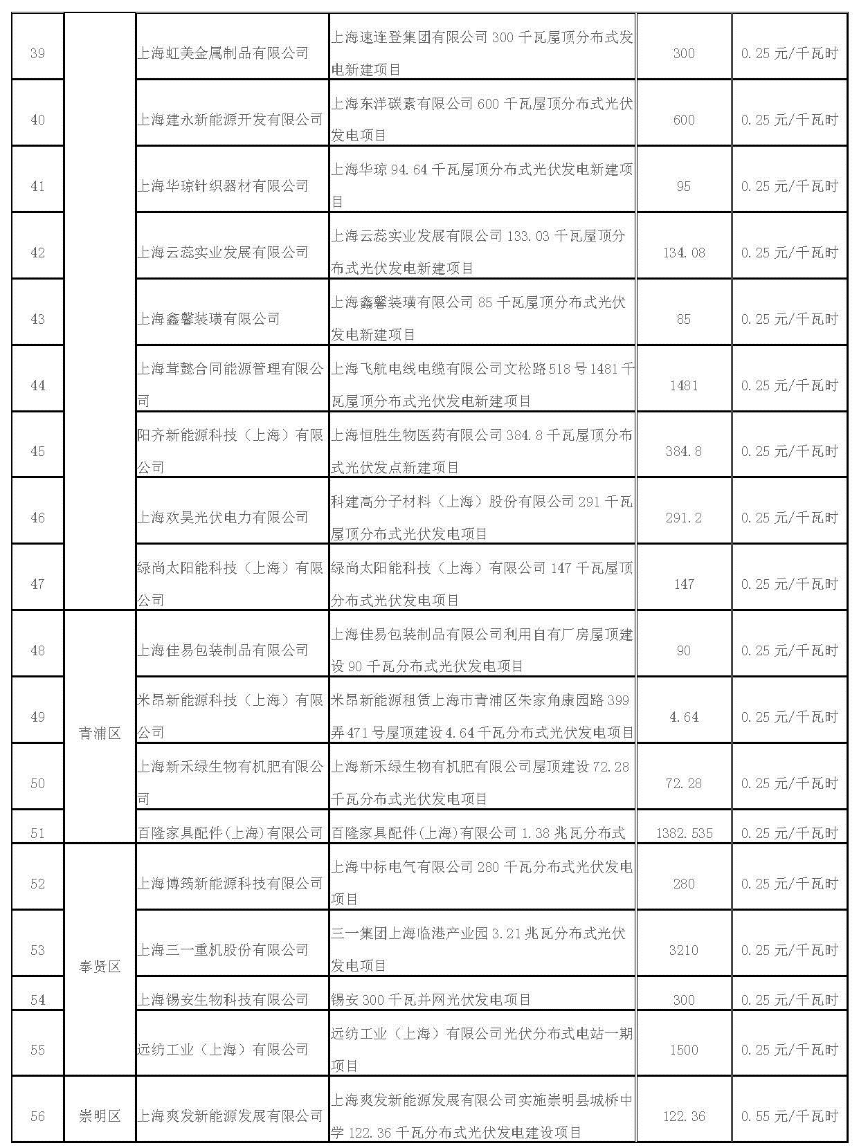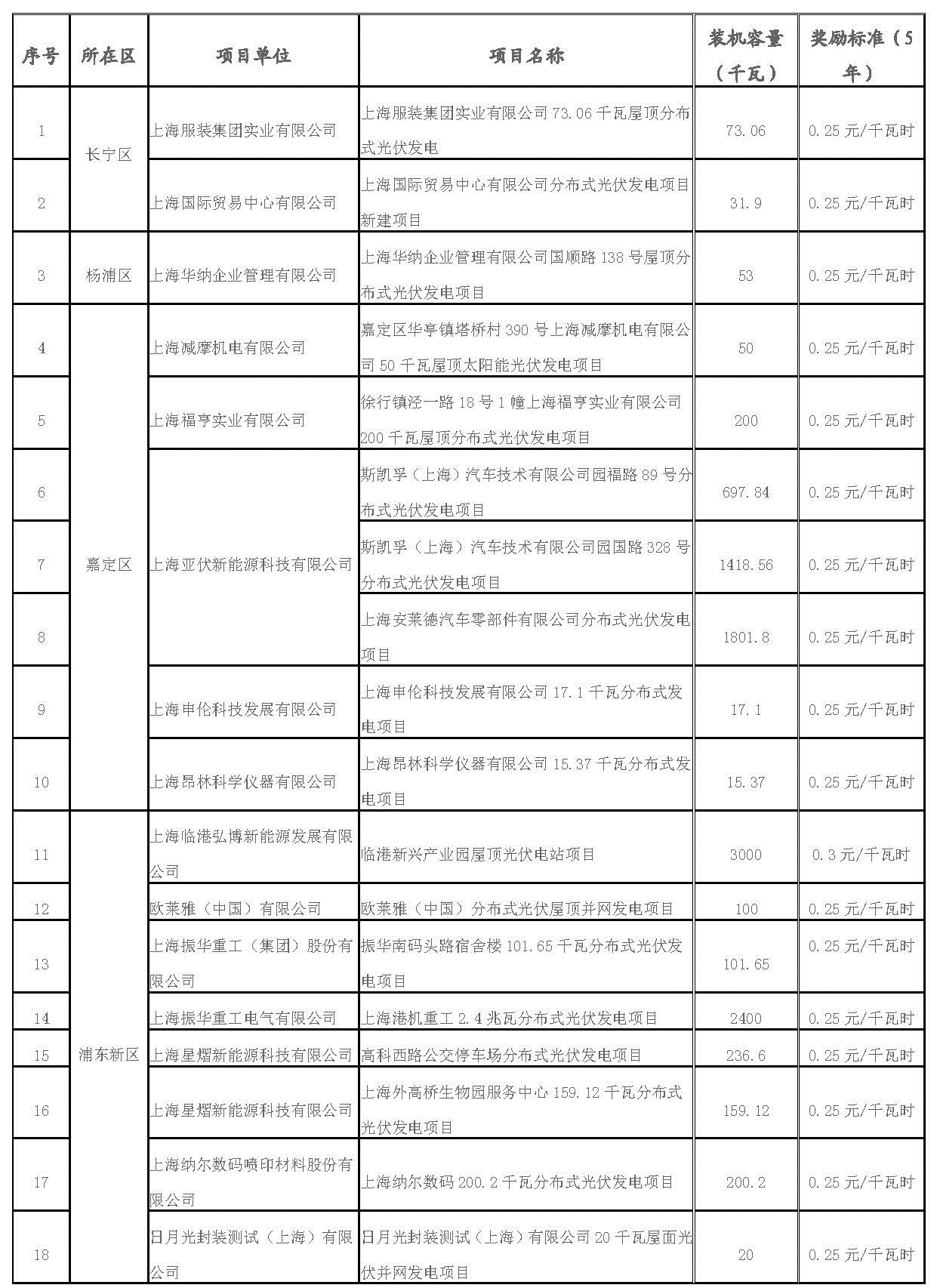 附件:1、2017年第一批上海市可再生能源和新能源專項資金獎勵項目表(光伏項目)