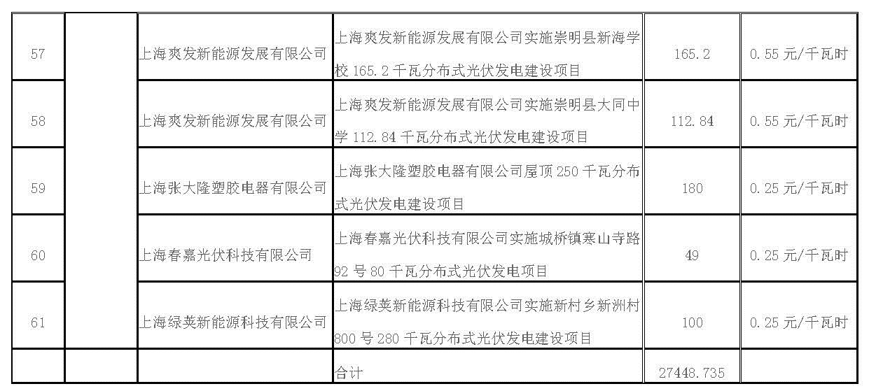 根據(jù)《上海市可再生能源和新能源發(fā)展專項資金扶持辦法》(滬發(fā)改能源〔2016〕136號),市發(fā)展改革委會同相關(guān)部門和單位,組織開展了2017年第一批可再生能源和新能源發(fā)展專項資金扶持項目的申報和評審工作。在專家評審意見的基礎(chǔ)上,經(jīng)審核,上海服裝集團實業(yè)有限公司73.06千瓦屋頂分布式光伏發(fā)電項目等61個光伏項目(共27448.735千瓦)和1313戶個人光伏(共8179.206千瓦)符合條件,列入市可再生能源和新能源發(fā)展專項資金獎勵目錄予以支持(詳見附件)。
