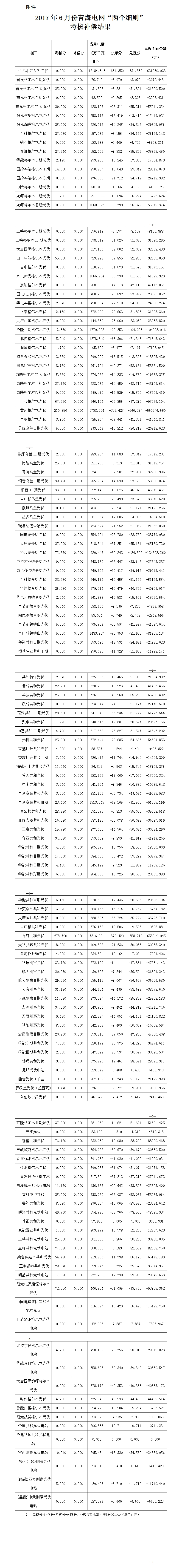 中國(guó)儲(chǔ)能網(wǎng)訊:根據(jù)《關(guān)于印發(fā)<西北區(qū)域發(fā)電廠并網(wǎng)運(yùn)行管理實(shí)施細(xì)則>及<西北區(qū)域并網(wǎng)發(fā)電廠輔助服務(wù)管理實(shí)施細(xì)則>的通知》(西北監(jiān)能市場(chǎng)〔2015〕28號(hào))規(guī)定,2017年6月份青海電網(wǎng)發(fā)電廠并網(wǎng)考核和輔助服務(wù)補(bǔ)償結(jié)果完成復(fù)核工作,現(xiàn)予公布,請(qǐng)依據(jù)附件結(jié)算。