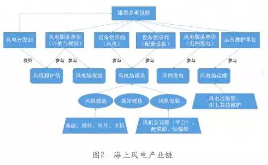海上風(fēng)能利用的不斷增加也必將帶動(dòng)產(chǎn)業(yè)鏈內(nèi)的各相關(guān)行業(yè)發(fā)展。海上風(fēng)電產(chǎn)業(yè)的運(yùn)行,以海上風(fēng)電投資企業(yè)為主導(dǎo)和驅(qū)動(dòng)力,其總投資量在很大程度上決定了風(fēng)電項(xiàng)目的規(guī)模和相關(guān)企業(yè)的獲利大??;以海上風(fēng)電設(shè)備制造業(yè)為硬件供應(yīng),廣義上的風(fēng)電設(shè)備供應(yīng)應(yīng)當(dāng)包括風(fēng)機(jī)整機(jī)供應(yīng)和相關(guān)海上風(fēng)電工程裝備供應(yīng)??傮w來(lái)說(shuō),海上風(fēng)電產(chǎn)業(yè)鏈的運(yùn)行主線(xiàn)為:風(fēng)資源評(píng)估—風(fēng)電場(chǎng)規(guī)劃—風(fēng)電場(chǎng)建設(shè)—并網(wǎng)發(fā)電—風(fēng)電場(chǎng)運(yùn)維。