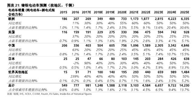 (歐洲、美國、中國、全球的電動(dòng)車銷量預(yù)測(cè))