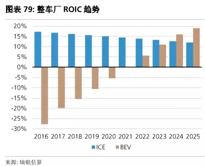 (燃油車和電動(dòng)車的投入資本回報(bào)率(ROIC)預(yù)測(cè))
