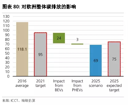 電動(dòng)車滲透率提升意味著零排放車輛對(duì)整體減排目標(biāo)的貢獻(xiàn)度更大,從而緩解整車廠的結(jié)構(gòu)性成本壓力(尤其是在歐洲市場(chǎng))。根據(jù)瑞銀的最新電動(dòng)車銷售預(yù)測(cè),減排帶來的好處對(duì)歐洲整車廠意義非凡。