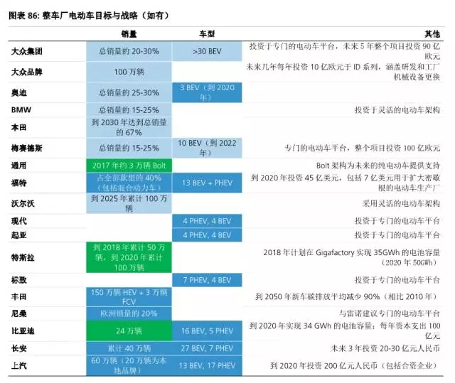 亞洲:憑借其品牌形象(瑞銀Evidence Lab調(diào)查證實(shí)了豐田在電動(dòng)車領(lǐng)域享有的良好聲譽(yù))以及在混合動(dòng)力車的技術(shù)能力,豐田處在較好的地位。豐田自行生產(chǎn)用于混合動(dòng)力車和純電動(dòng)車的核心零部件,包括電池、馬達(dá)、PCU等;由于其混合動(dòng)力車年產(chǎn)量在140萬輛以上,豐田已經(jīng)獲得了成本優(yōu)勢(shì),因此純電動(dòng)車相關(guān)技術(shù)的額外研發(fā)成本負(fù)擔(dān)相對(duì)較小。為了在較長(zhǎng)期內(nèi)應(yīng)對(duì)環(huán)保相關(guān)法規(guī),豐田在產(chǎn)品結(jié)構(gòu)上采取了全系列策略。豐田積極開發(fā)純電動(dòng)車技術(shù),并將其歸類為中短里程通勤車輛,同時(shí)計(jì)劃逐步從混合動(dòng)力車向插電式混合動(dòng)力車和純電動(dòng)車轉(zhuǎn)型。與豐田相似,本田也采取全系列策略進(jìn)入下一代零排放汽車市場(chǎng)。本田計(jì)劃到2030年插電式混合動(dòng)力車/純電動(dòng)車/燃料電池車將占其總銷售的三分之二。尼桑將純電動(dòng)車列為其下一代零排放汽車產(chǎn)品核心;其Leaf銷量在全球純電動(dòng)車市場(chǎng)上處于領(lǐng)先地位,公司計(jì)劃在2017年進(jìn)行車型更新。瑞銀預(yù)計(jì)尼桑將會(huì)推出更多車型來維持其在這一領(lǐng)域的領(lǐng)先地位。