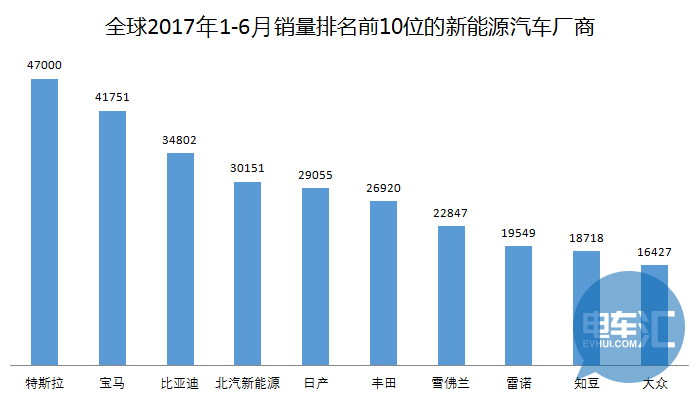 與此同時,日產(chǎn)LEAF(2017年上半年銷量達(dá)到26591輛,排名第二);特斯拉Model X(2017年上半年銷量達(dá)到21,550輛,排名第四)在6月份分別實(shí)現(xiàn)了4647輛和4684輛的銷量。