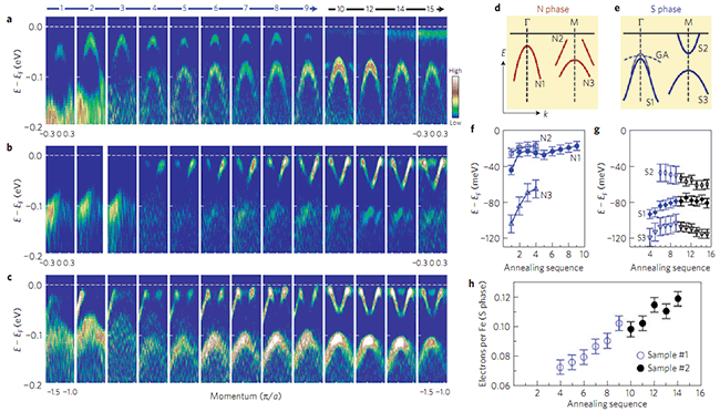 圖2. 單層FeSe/SrTiO3費米面隨著退火的演變
