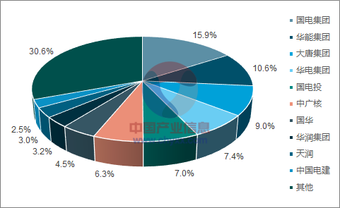 2016年中國(guó)風(fēng)電累計(jì)裝機(jī)排名前十的開發(fā)商市場(chǎng)份額