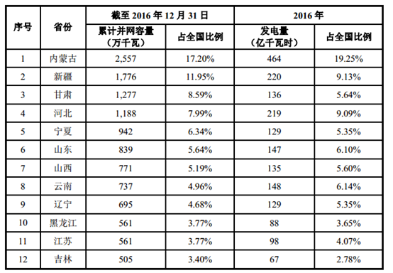 2016 年我國(guó)風(fēng)電產(chǎn)業(yè)發(fā)展并網(wǎng)運(yùn)行統(tǒng)計(jì)數(shù)據(jù)