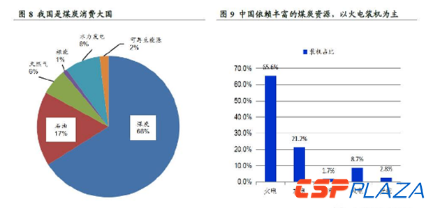 多煤貧油少氣決定了中國以火電裝機為主。①中國的煤炭資源豐富,據(jù)《世界能源統(tǒng)計回顧2015》數(shù)據(jù)顯示,中國能源消費結(jié)構(gòu)中煤炭占比高達66%,約為天然氣和石油消費總量的兩倍。②依托于中國豐富的煤炭資源,發(fā)電裝機結(jié)構(gòu)中火電占據(jù)主導地位。