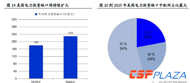 美國存在較大電力缺口,其中配網(wǎng)部分最顯著。據(jù)美國土木工程師協(xié)會于2016年發(fā)布的美國基礎設施投資缺口研究報告,美國電力投資缺口持續(xù)擴大將嚴重損害經(jīng)濟社會的發(fā)展。到2025年,投資缺口額將累計達到1770億美元,到2040年,則將進一步超過5650億美元。若這一情況繼續(xù)得不到解決,將給美國經(jīng)濟發(fā)展成本造成很大負擔,同時促使美國家庭生活成本和企業(yè)經(jīng)營成本的上升,最終導致全國GDP的下滑。據(jù)該報告推算,到2025年,美國GDP將減少8190億美元,失業(yè)人口增加10.2萬,到2040年,GDP將擴大減幅至1.9萬億美元,失業(yè)人口升至24.2萬。