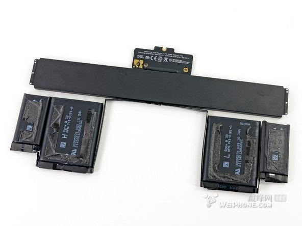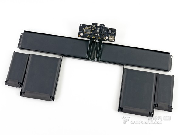 整塊電池一共由6個電池單元組成,整體看上去就像一個衣架。和 15 英寸 Retina Macbook Pro 的電池設(shè)計相比,“衣架”風(fēng)格的設(shè)計為 13 英寸 Retina Macbook Pro 的內(nèi)部節(jié)省了許多空間。
