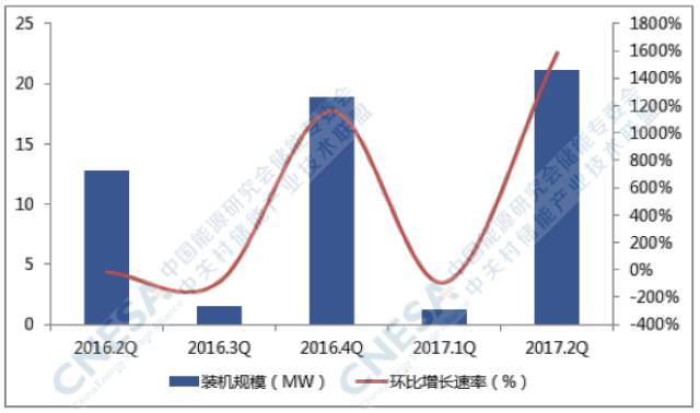 圖4 連續(xù)五個季度新增投運(yùn)項(xiàng)目的裝機(jī)分布及環(huán)比增長率(中國)