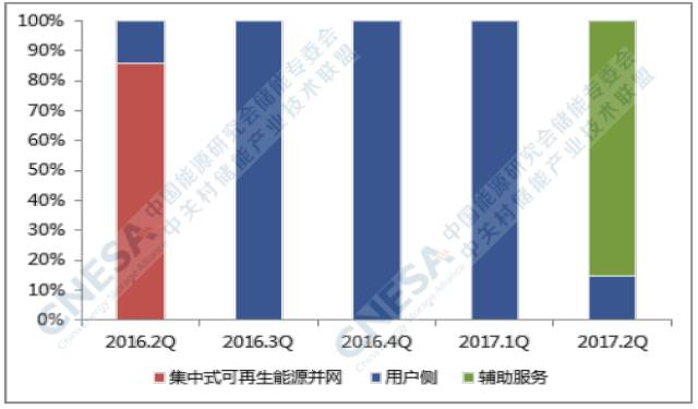 圖2 連續(xù)五個季度新增投運(yùn)項(xiàng)目的應(yīng)用裝機(jī)分布(全球)