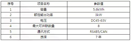 需要根據(jù)家用負(fù)載的需求來確認(rèn)電池容量,此次儲能項目采用GCL的E-KwBe5.6鋰電池,通過直流開關(guān)接到ES系列逆變器電池端(加上電池端相片),電池部分參數(shù)列舉如下:
