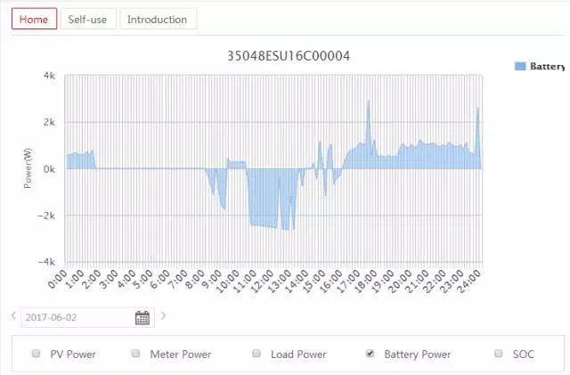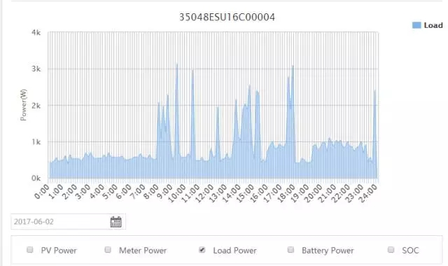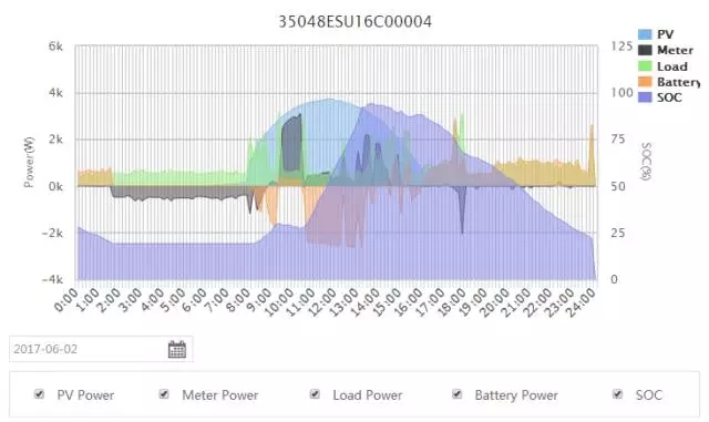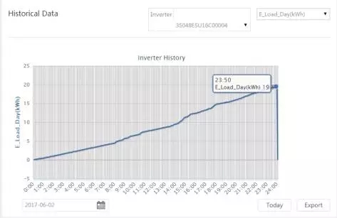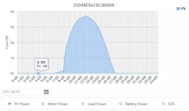 此次電站是在2017年5月份安裝,正值南半球的秋冬季節(jié),通過固德威監(jiān)控網(wǎng)站可以獲得電站運(yùn)行的全部有效信息,以其中某一天為例:
