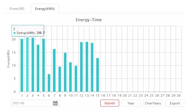 組件發(fā)電信息:當(dāng)天一共發(fā)了20.7kWh的電量