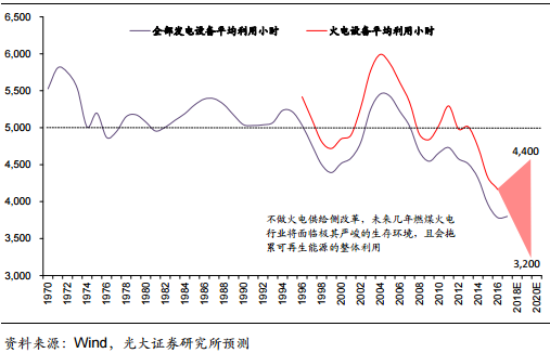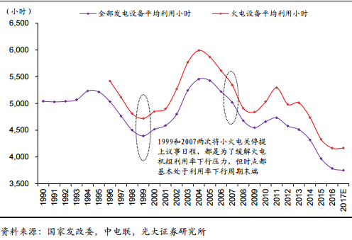 2014-2016年,火電機(jī)組利用小時(shí)連續(xù)三年大幅下滑,2016年已經(jīng)跌至建國以來的歷史低位4160小時(shí);