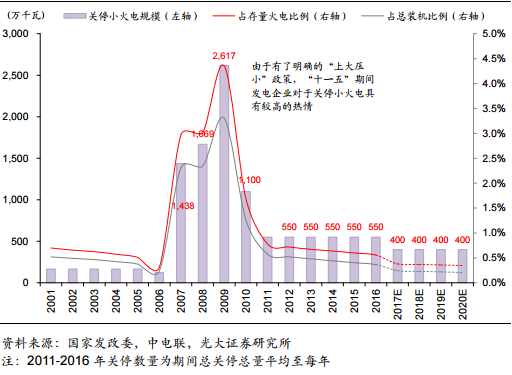 圖2:歷史上小火電關(guān)停(包括“上大壓小”)規(guī)模統(tǒng)計(jì)