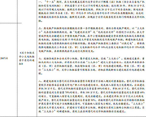 2007年1月,國務(wù)院批轉(zhuǎn)發(fā)展改革委、能源辦《關(guān)于加快關(guān)停小火電機(jī)組若干意見的通知》,為實(shí)現(xiàn)“十一五”規(guī)劃綱要提出的單位國內(nèi)生產(chǎn)總值能源消耗降低和主要污染物排放總量減少目標(biāo),推進(jìn)電力工業(yè)結(jié)構(gòu)調(diào)整,針對(duì)加快關(guān)停小火電機(jī)組工作提出24項(xiàng)工作意見。最終,“十一五”期間,全國上大壓小、關(guān)停小火電機(jī)組7682.5萬千瓦,遠(yuǎn)超5000萬千瓦的關(guān)停目標(biāo)。
