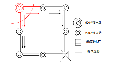 圖7:電網(wǎng)斷面潮流(重過載情況)示意圖