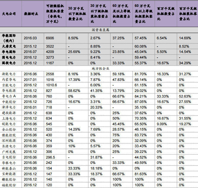 4.2、機(jī)組質(zhì)量較高的上市公司將受益于行業(yè)供給側(cè)改革
