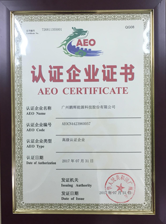 中國儲能網訊:近日,經過中國海關專家組認證審核,廣州鵬輝能源科技股份有限公司(簡稱“鵬輝能源”,股票代碼:300438)獲得中國海關認定的最高信用等級“海關高級認證企業(yè)(AEO)證書”。