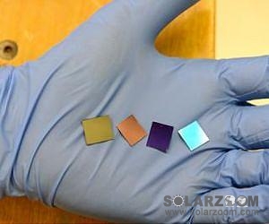 科學(xué)家手里的四塊硅片配有當(dāng)前全球最薄光吸收劑