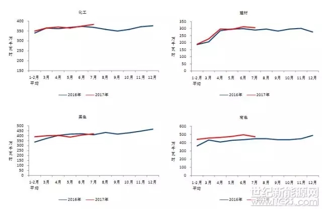 圖4 2016、2017年重點行業(yè)分月用電量情況