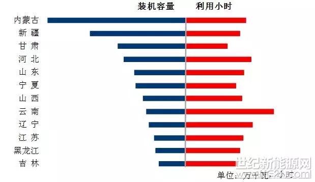 圖6 1-7月份風電裝機較多省份風電裝機容量和設備利用小時