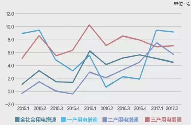 及一、二、三產(chǎn)業(yè)用電量增速
