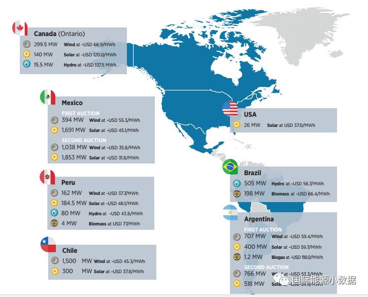 從圖中可以看到阿布扎比的1.17吉瓦光伏發(fā)電項(xiàng)目,價(jià)格僅為24.2美元/兆瓦時(shí)(相當(dāng)于人民幣0.16元/千瓦時(shí))
