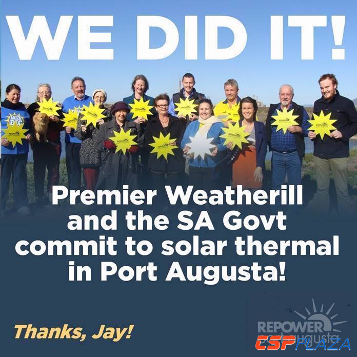 據CSPPLAZA此前報道,在澳大利亞可再生能源署(ARENA)的努力下,聯(lián)邦政府批準撥劃1.1澳元的優(yōu)惠貸款在奧古斯塔港建設光熱電站,該電站的建設將取代該地區(qū)此前因嚴重污染環(huán)境而遭到關停的燃煤機組,同時還可以解決前燃煤機組員工的再就業(yè)問題。